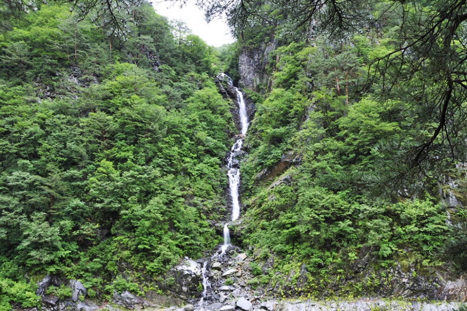 오장폭포는 강원특별자치도 정선군 여량면 구절리 있는 인공폭포이다. 강원도 정선군 높이 1,332m의 노추산 남서쪽 줄기인 오장산에서 발원한 물로 조성되었다. 규모는 경사길은 209m이고 수직 높이는 127m로 전국에서 가장 큰 규모이다. 오장폭포의 계곡물은 노추산의 수려한 계곡을 가르고 송천으로 떨어져 내린다. 길고 장엄한 폭포가 눈길을 사로잡는다. 폭포 주위로 봄에 철쭉이 만발하여 장관을 이루며, 여름에는 양쪽 봉우리의 푸르른 나무들이 더욱 멋진 풍경을 연출한다. 인근에 레일바이크, 아우라지, 노추산 이성대, 자개골 등 많은 명소가 있어 여행하기 좋다.