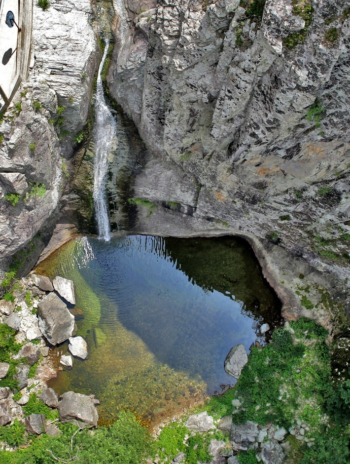 노루용추는 계곡 초입 작은 폭포 아래에 형성되어 있는 폭호이다. 폭포의 높이 1m에 비해 유량이 많아 큰 폭호가 형성되었다. 이곳에서 응회암과 퇴적암의 경계가 관찰된다. 노루용추는 진흙과 모래가 굳어져서 만들어진 퇴적암과 화산재가 굳어져서 만들어진 응회암의 특성 차이에 의해 만들어졌다. 노루용추의 퇴적암은 상부에 놓인 응회암보다 연하기 때문에 상대적으로 풍화가 많이 이루어졌다. 따라서 응회암 부분은 침식되지 않아 폭포를 이루고 연한 퇴적암이 많이 깎여나가 폭호를 이루었다.
