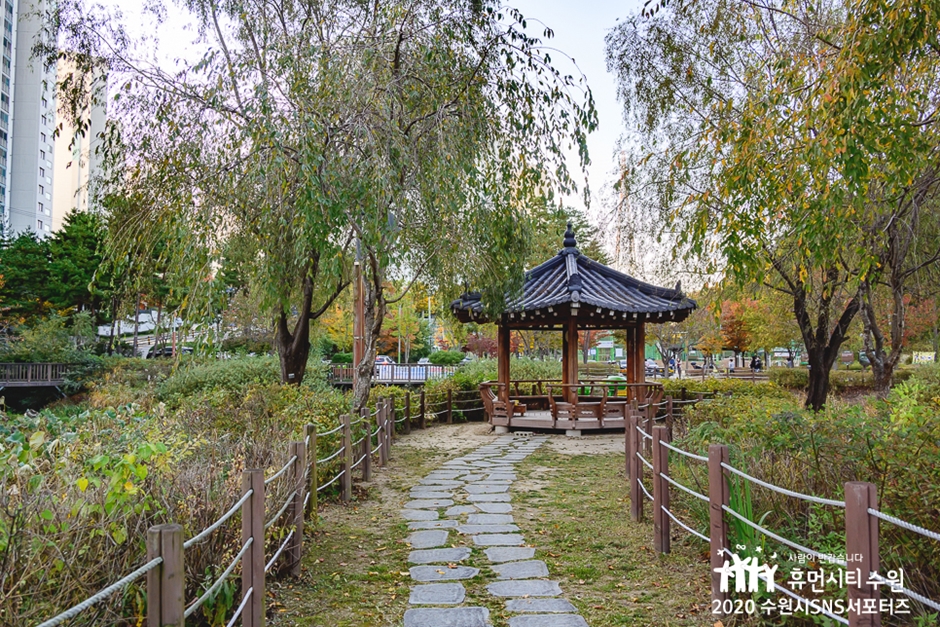 연못, 육각정자, 생태습지, 숲속놀이시설, 배드민턴1, 게이트볼1, 족구장2, 화장실1, 휴게쉼터, 산책로