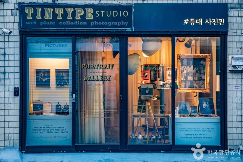 그래서 등대사진관 간판에도 [TINTYPE STUDIO 등대사진관]이라고 되어있다. 150년 전 사진 기법을 사용하는 아날로그 사진관이기 때문에 장비부터 옛날 영화에서나 보던 대형 사진기를 사용한다. 습판 사진의 결과물은 독특한 모노톤의 사진으로 아날로그 특유의 손맛과 19세기 사진 문화예술의 정수를 등대사진관에서 경험할 수 있다.