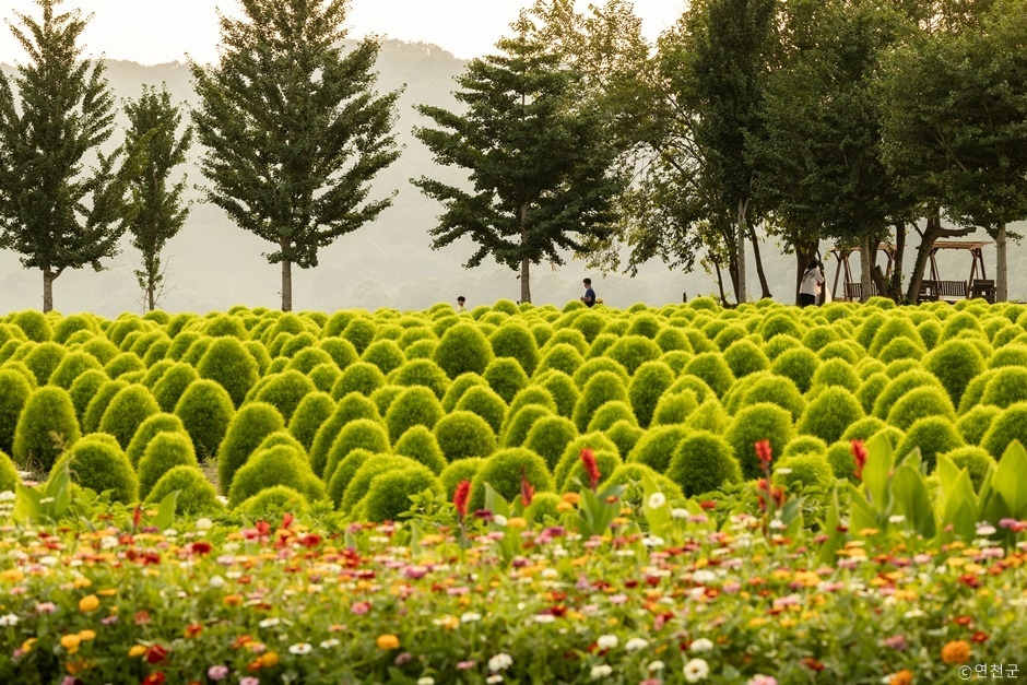 댑싸리 외에 황화 코스모스, 국화, 백일홍, 천일홍, 마리골드, 일일초, 칸나 등 다양한 꽃들도 볼 수 있다. ‘겸허, 청초한 미인’의 꽃말을 가진 댑싸리는 8월 말부터 불긋불긋해지고 9월 초 분홍색과 빨간색, 주황색으로 물들어 이색적인 분위기를 연출한다. 임진강 댑싸리 공원은 가족, 연인과 조용히 자연을 즐기면서 인생 사진을 남길 수 있는 곳으로 서울 근교에 자리해 당일치기 여행이 가능하다.