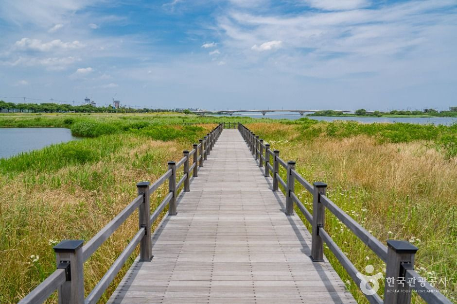 ‘연어의 모천’이라 불리는 양양 남대천의 자연을 관찰할 수 있는 생태 여행지다. 낙산대교 근처, 남대천 물길이 동해로 흘러 들어가는 하류에 조성되어 있다. 남대천 생태관찰로는 광활한 갈대숲으로 유명하다. 길게 뻗은 덱 탐방로를 따라 금빛 갈대숲을 산책할 수 있고, 주변에 시야를 가리는 건물이 없어 탁 트인 풍광을 만끽할 수 있다. 관찰로 곳곳의 전망대는 강변으로 돌출되어 있어 갈대 군락과 강이 어우러진 풍경을 조망하기에 좋은 포인트다.