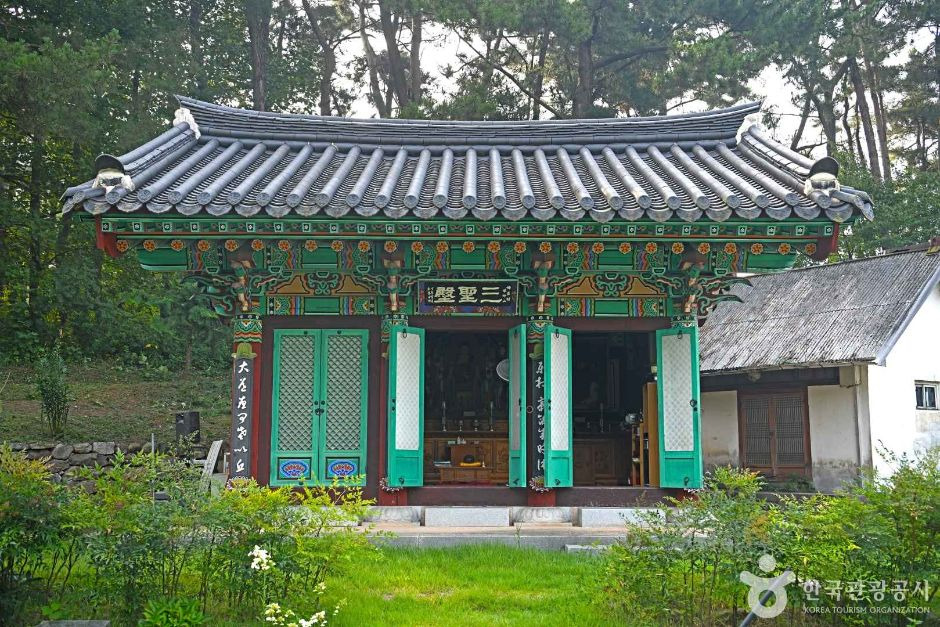 고시래전을 비롯하여 성모암의 몇몇 전각은 매우 독특하다. 극락보전은 서방 극락정토를 구현하여 전각 내 세 벽마다 개인 감실을 두고 있어 영혼의 안식처인 납골당을 둔 셈이며 산신각은 다른 전각과 달리 초가로 지붕을 씌웠고 문살에는 귀와 눈과 입을 가리거나 합장을 한 동자가 화려하게 조각되어 있다.