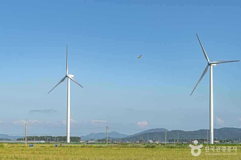 봄이면 도로 중간중간에 펼쳐진 노란 유채꽃 배경과 여름이 되면 초록의 논 배경과 해안가의 칠면초가 만들어내는 붉은 배경, 가을이면 황금빛 들녘과 어우러지는 하얀 풍력발전기는 그 색 대비만으로도 사진 찍기 좋은 포토존이 된다.