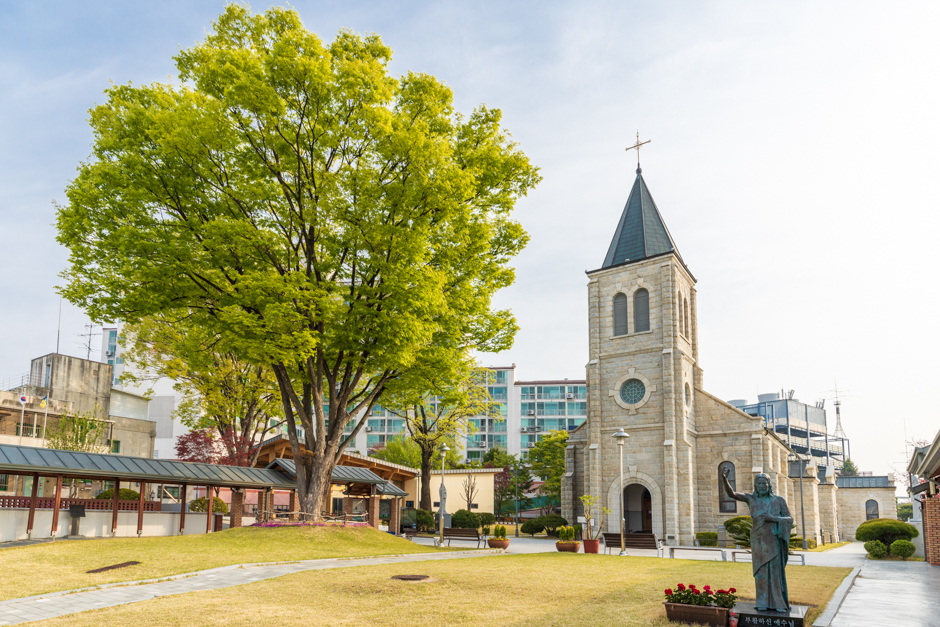 죽림동성당은 춘천의 첫 성당이자 천주교 춘천교구 주교좌성당이다. 죽림동성당 입구 언덕에는 청동으로 만든 예수 성심상이 있는데, 높이 3.5m, 너비 3m로 국내 최대 규모다. 예수 성심상은 세상을 포용하듯 양팔을 벌린 채 서 있다.